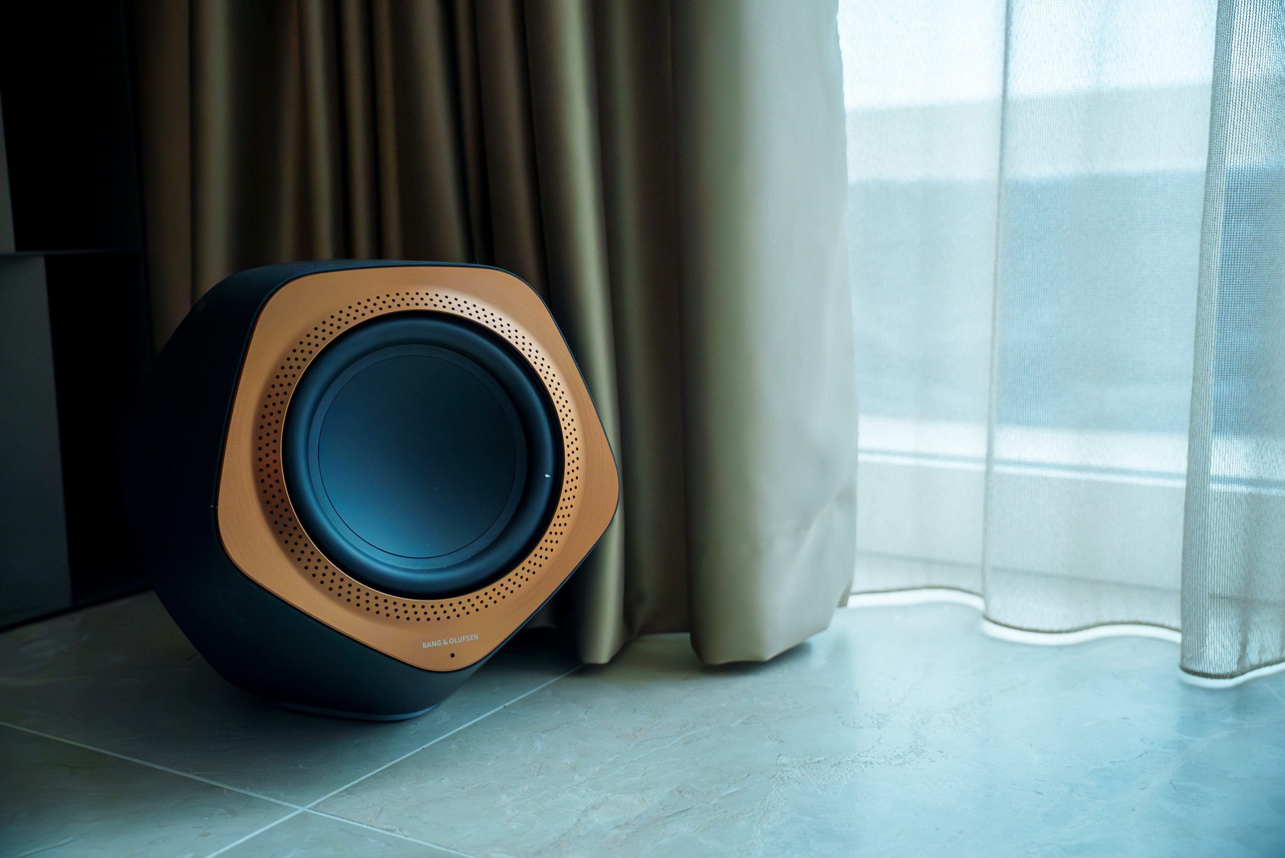 • A BeoLab 19 subwoofer in the same bronze finish completes the system, delivering deep, room-filling bass and a powerful surround sound experience.