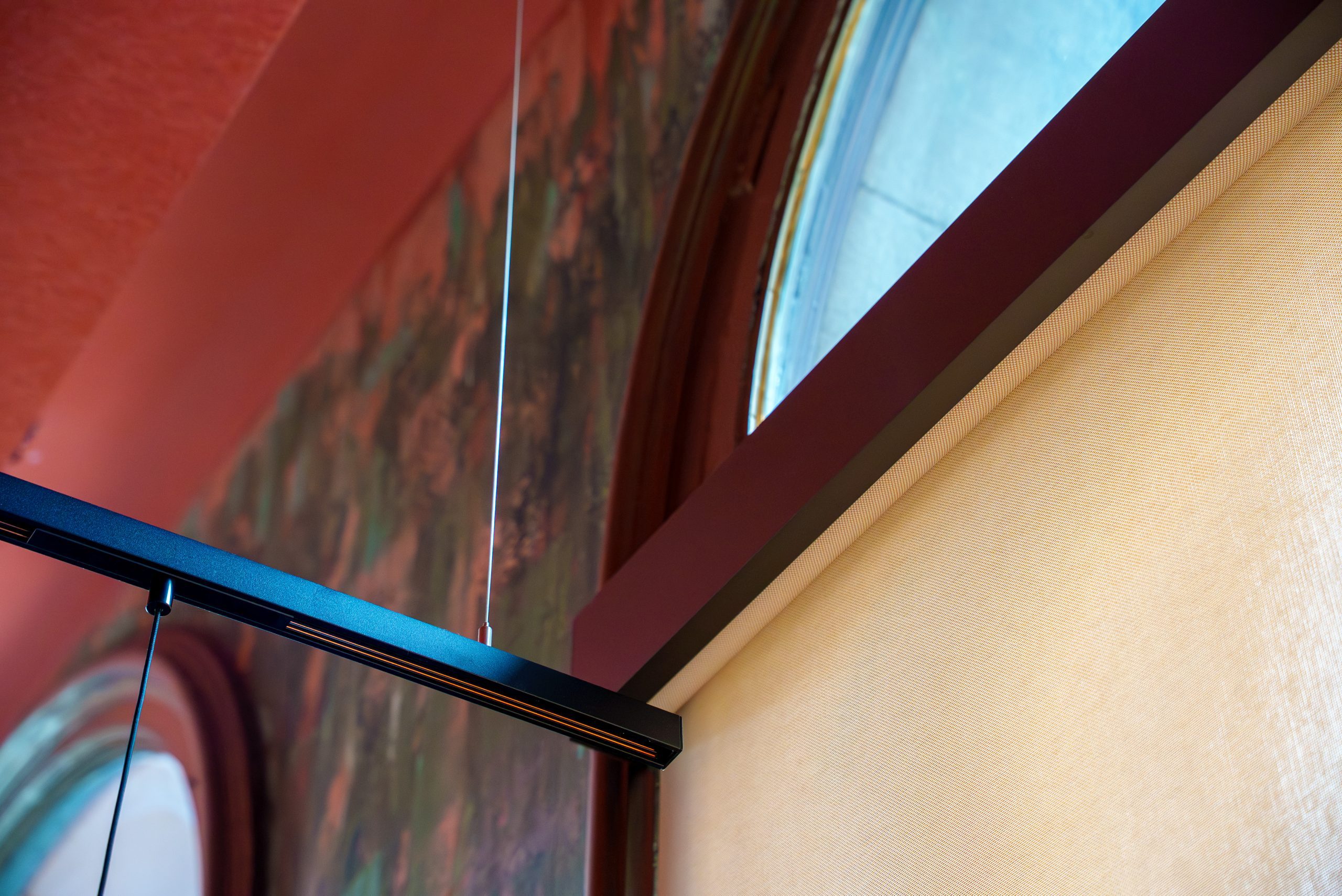 Variety Jones sourced custom blind boxes to conceal the rollers, blending perfectly with the curved window arches — a true chef’s kiss finishing touch.